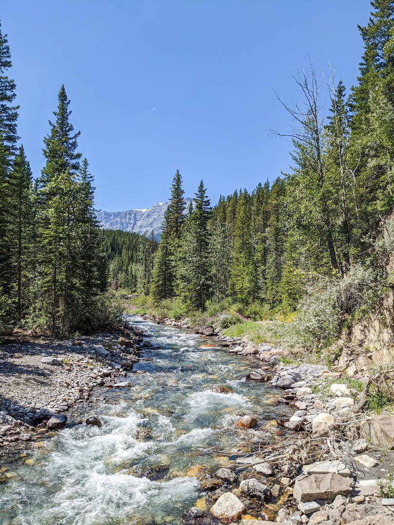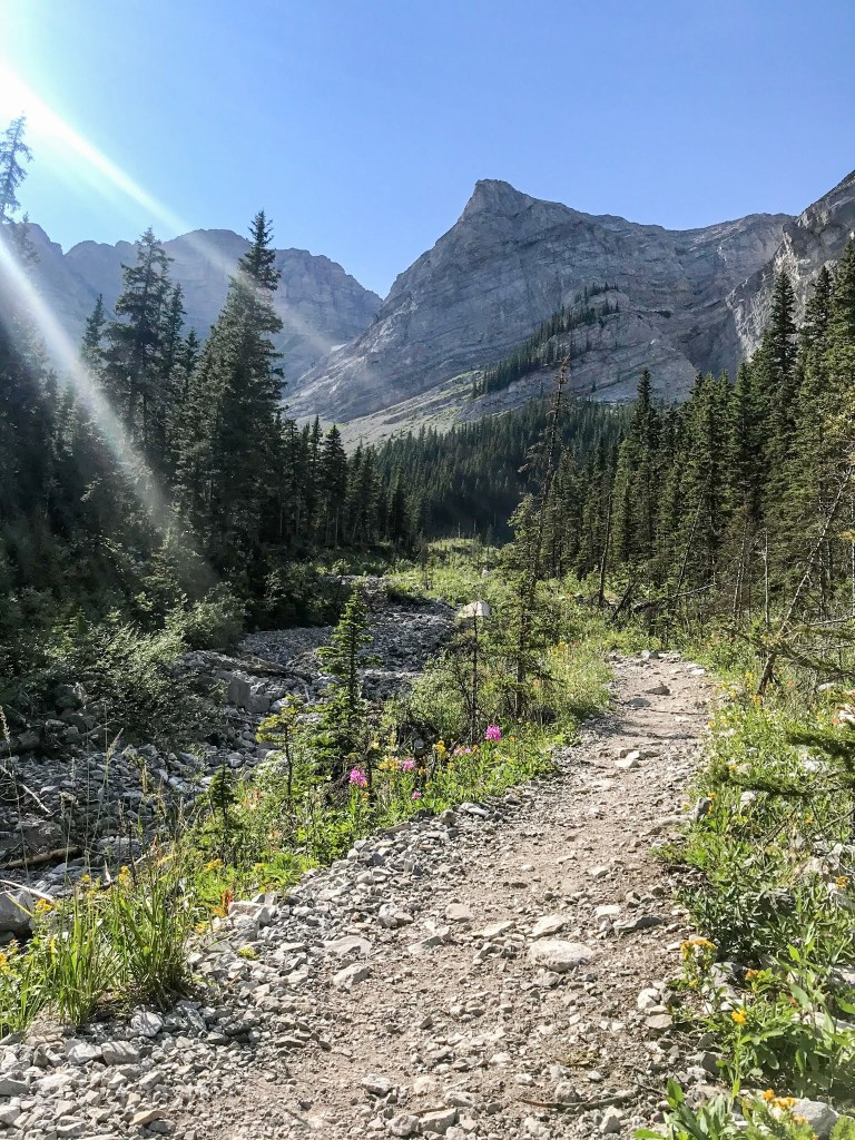 The trail follows Ribbon Creek all the way up the pass to Ribbon Falls. The creek is a beautiful companion to the trail, winding through the forest below the mountain ridge. You cross the river multiple times so you don’t need to worry about packing lots of water. As long as you have a filtration system, you will have ample access!