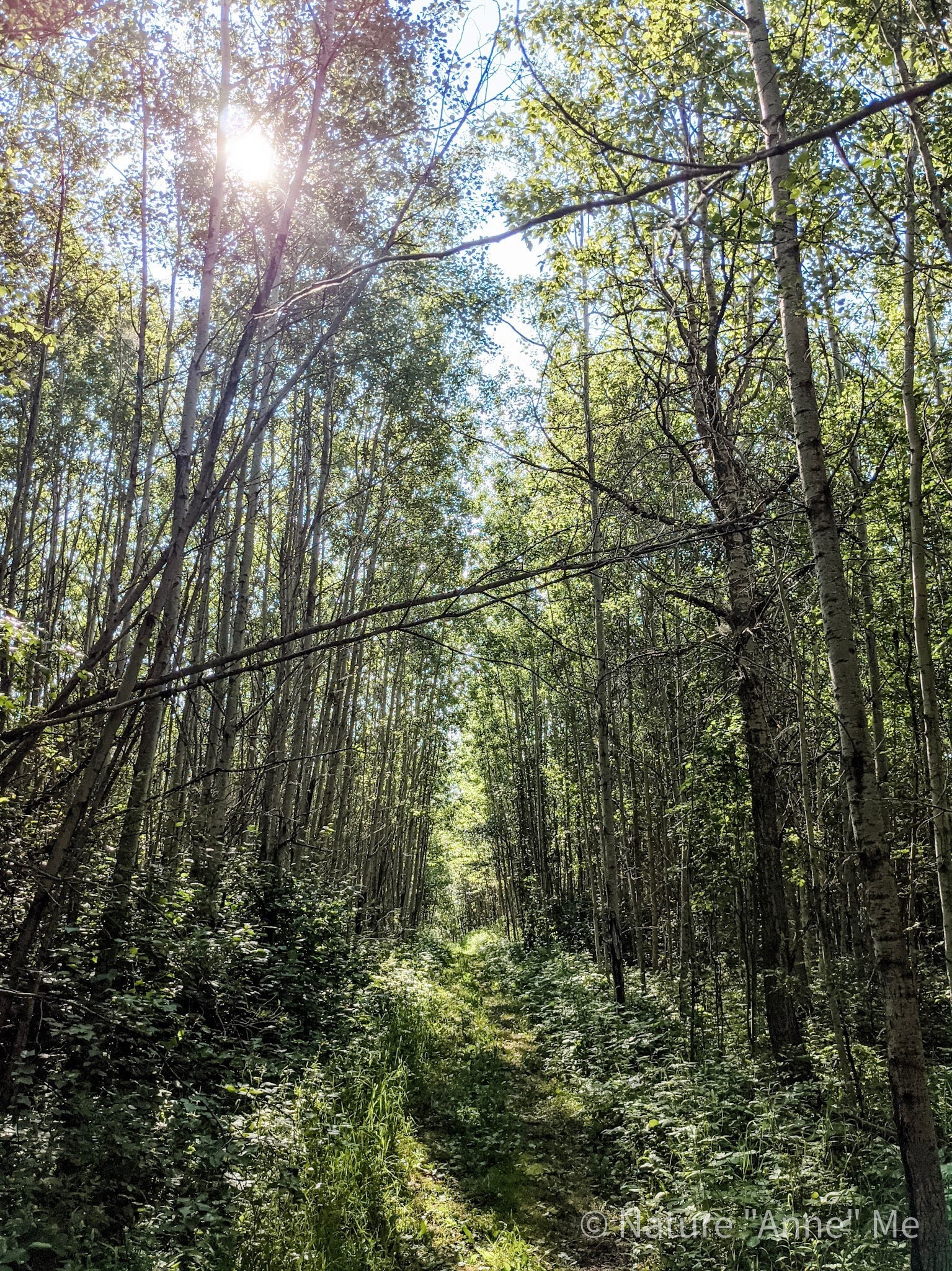 We took Simmons Trail to Shirley Lake Trail. We headed north around Spruce Island Lake and Paul Lake. The trail was dry. As my friends hiked Elk Island trails frequently, we were all amazed at the dried up mud holes. Usually, this area is a wetland paradise full of mud, swamps, tall grass, and bugs. But it wasn’t. The bugs were out. The grass was tall. But the swamps and mud were very dried up.