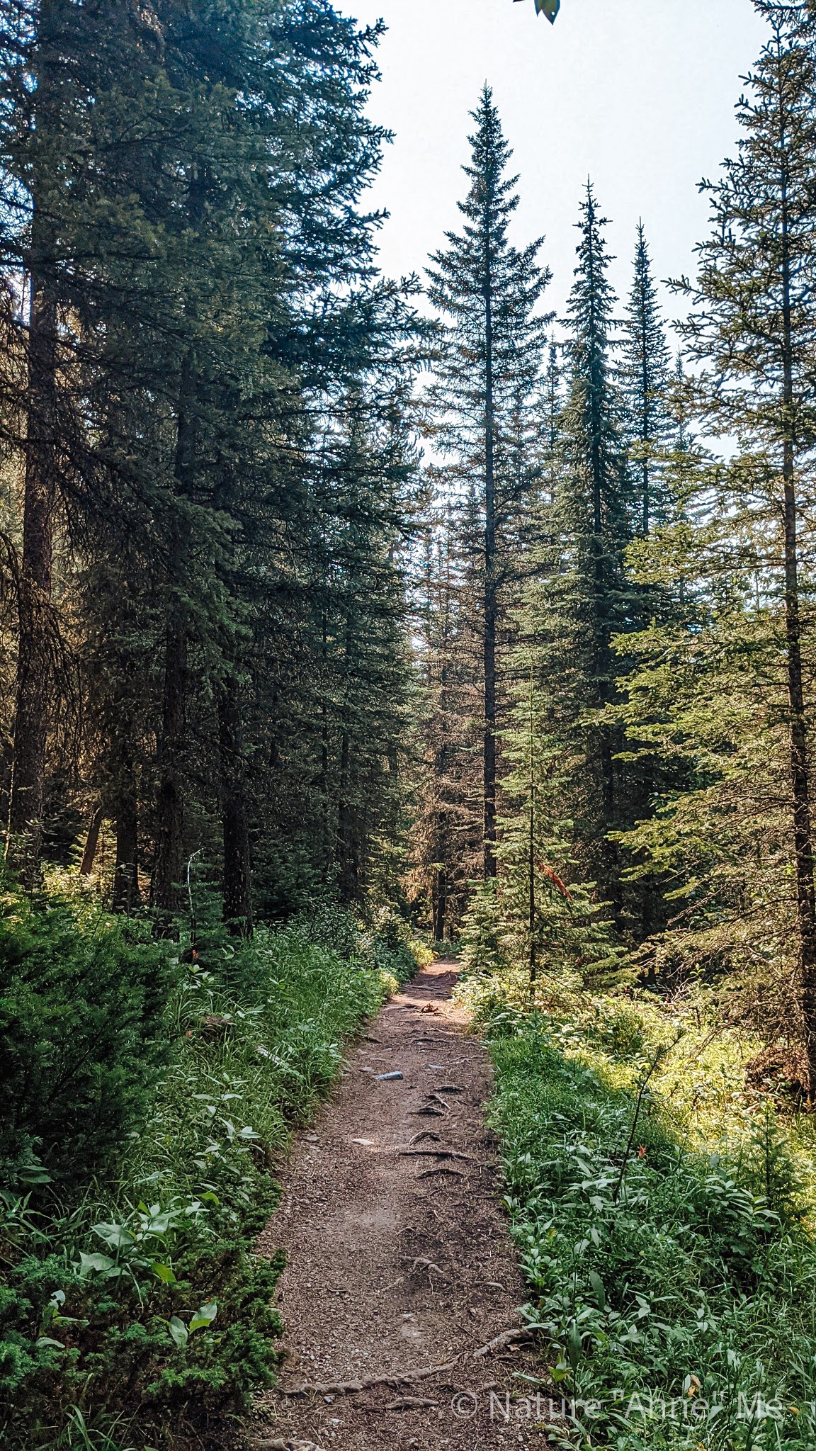 This trail starts at Barrier Lake in Kananaskis. You start on a gravel road before hitting the forest.